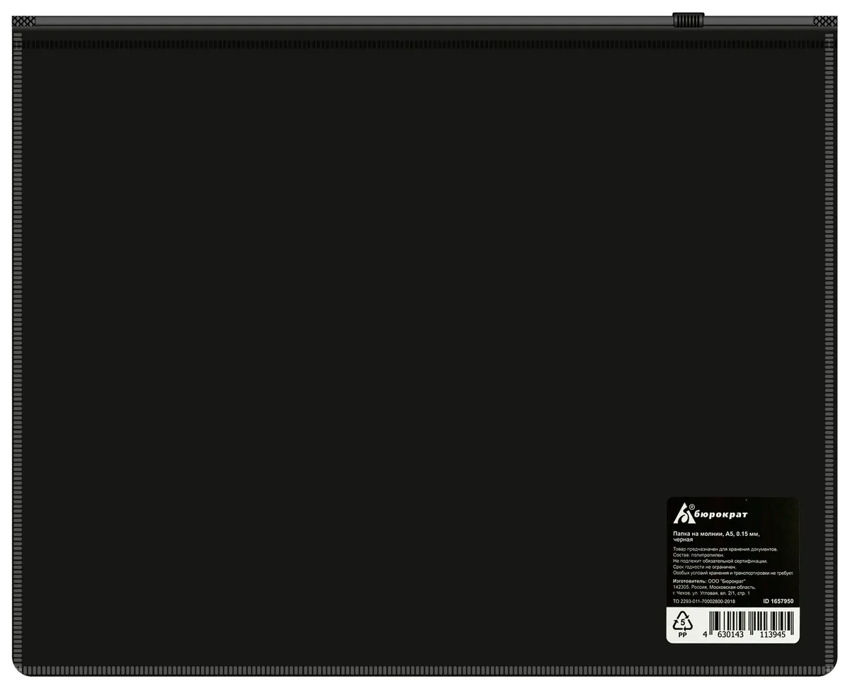 Папка на молнии ZIP Бюрократ -BPM5A2BLCK A5 полипропилен (-BPM5A2BLCK)