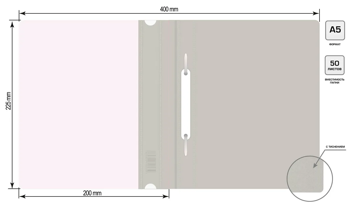 Папка-скоросшиватель Бюрократ Люкс -PSL20A5GREY A5 прозрач.верх.лист пластик серый (-PSL20A5GREY)
