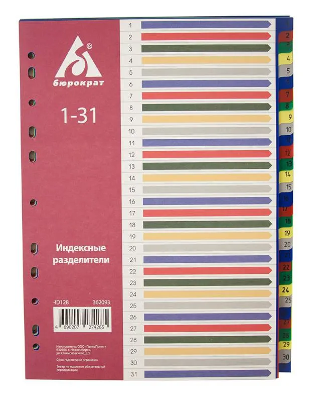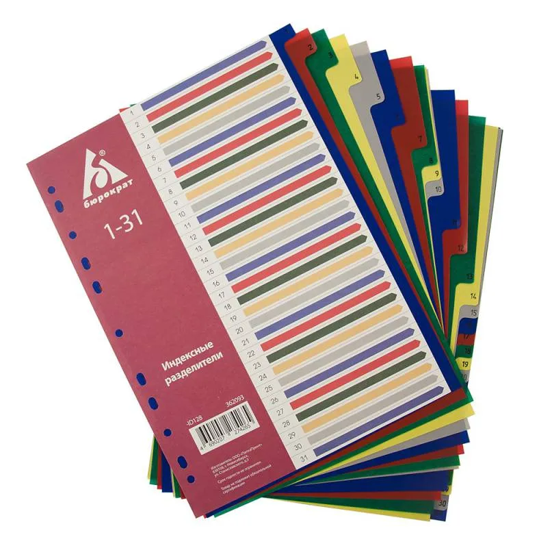 Разделитель индексный Бюрократ ID128 A4 пластик 1-31 с (ID128)