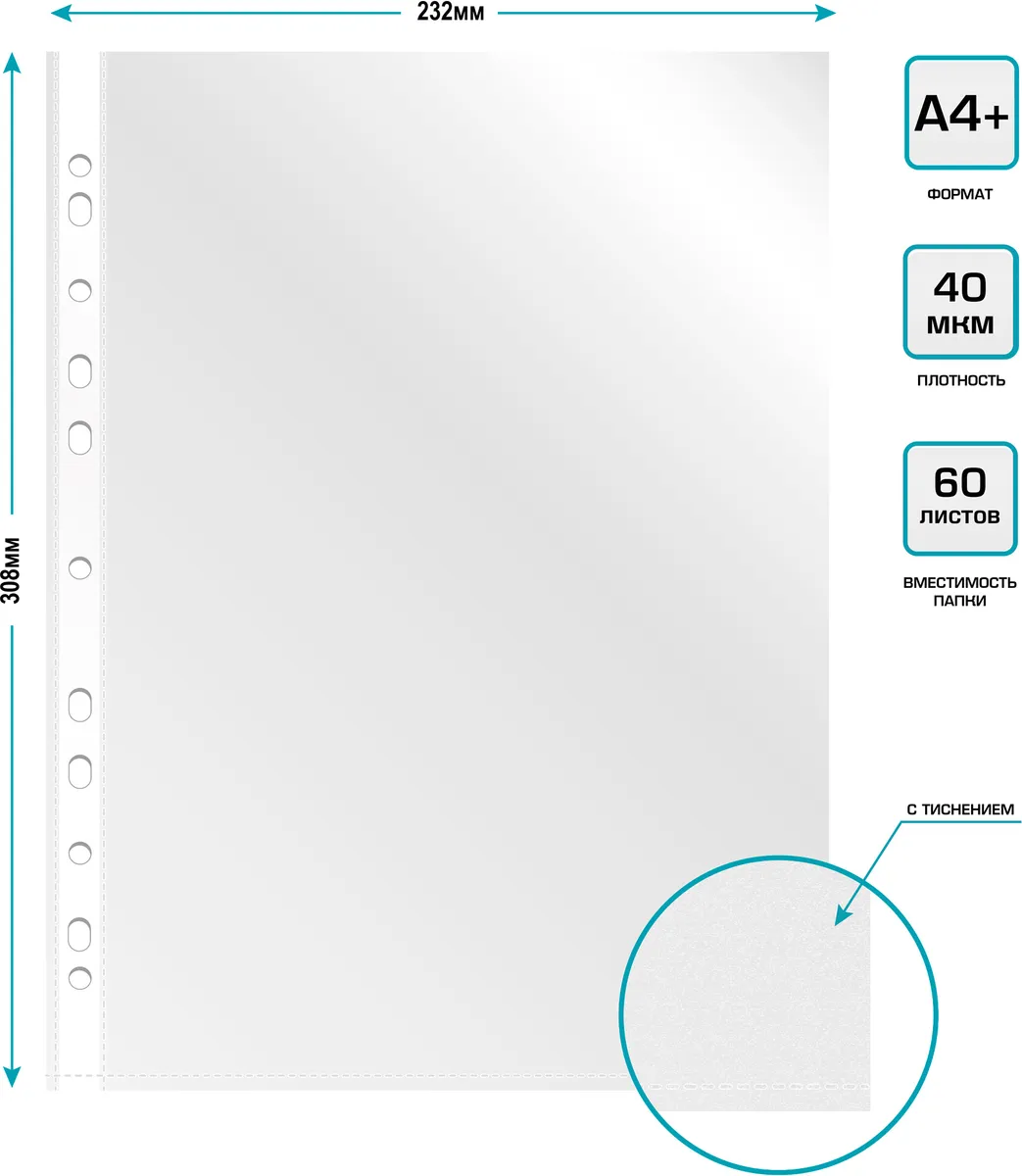 Папка-вкладыш Бюрократ Премиум 013BKPREM тисненые А4+ 40мкм (упак.:100шт) (013BKPREM)