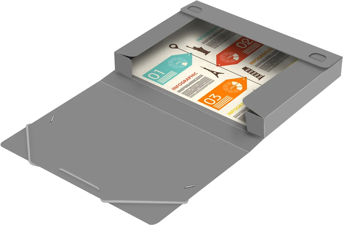 Папка-короб на резинке Бюрократ -BA25/05GREY пластик 0.5мм корешок (-BA25/05GREY)