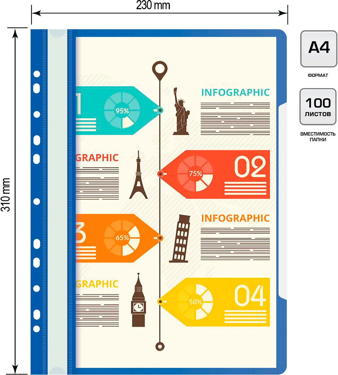 Папка-скоросшиватель Бюрократ -PS-P20BLU A4 прозрач.верх.лист боков.перф. пластик синий (-PS-P20BLU)