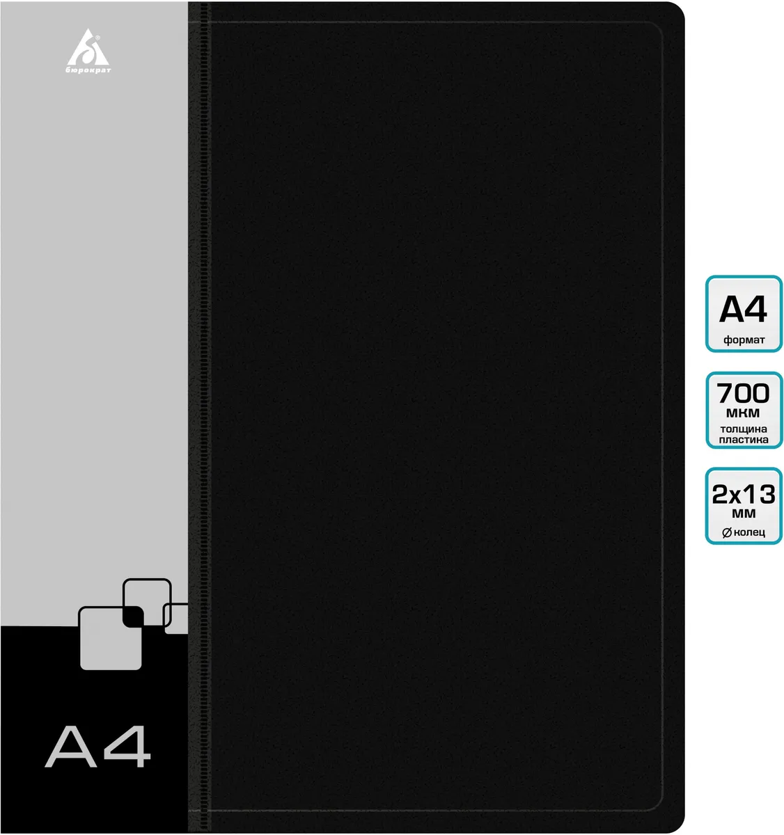 Папка на 2-х кольцах Бюрократ -0818/2RBLCK A4 пластик (-0818/2RBLCK)