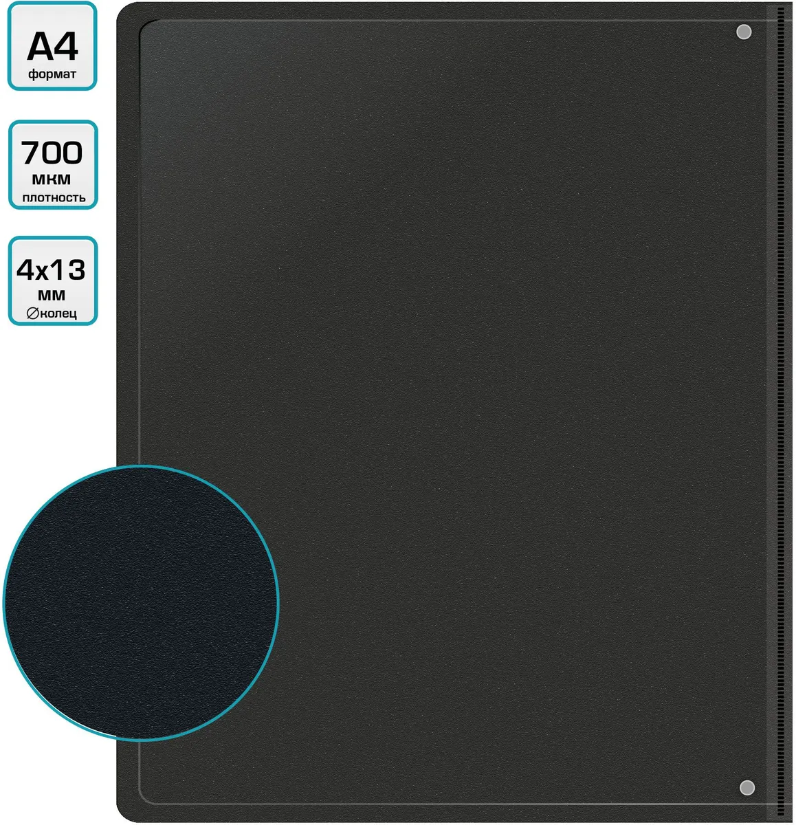 Папка на 4-х кольцах Бюрократ -0818/4RBLCK A4 пластик (-0818/4RBLCK)