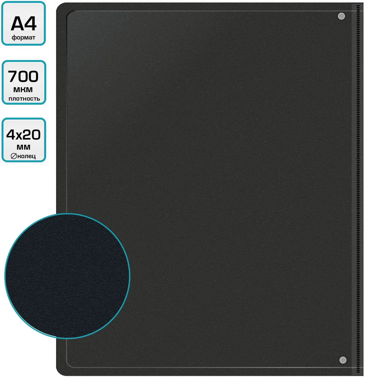 Папка на 4-х кольцах Бюрократ -0827/4RBLCK A4 пластик (-0827/4RBLCK)