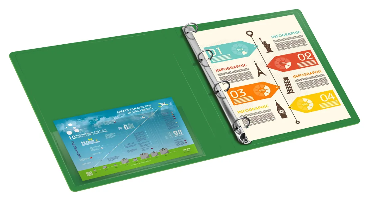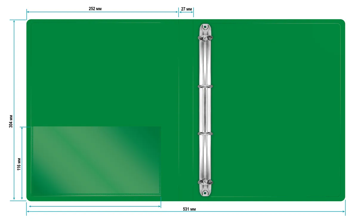 Папка на 4-х кольцах Бюрократ -0827/4RGRN A4 пластик (-0827/4RGRN)