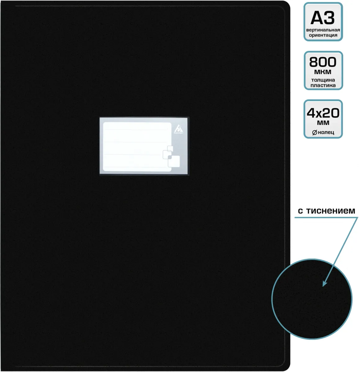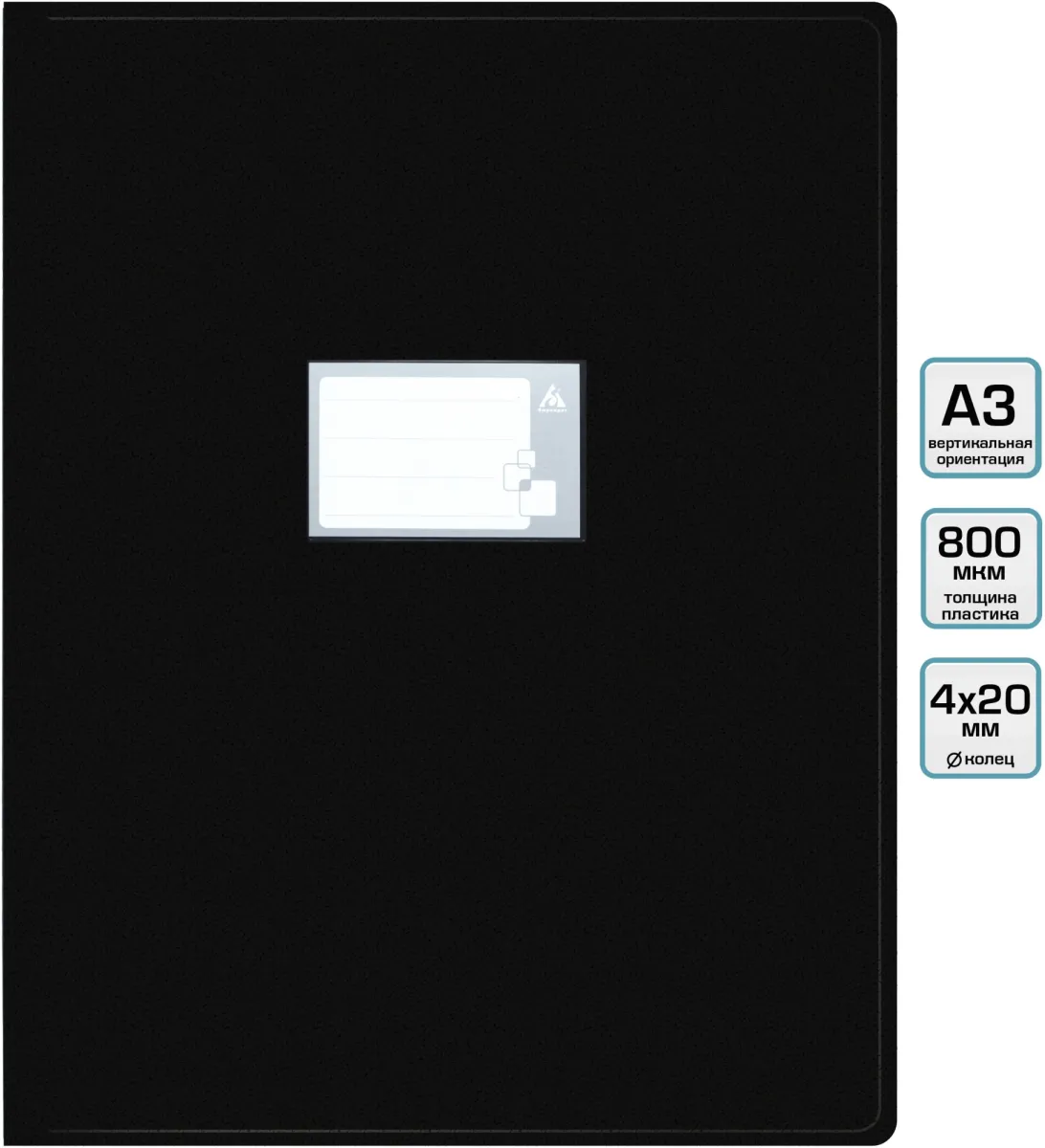 Папка на 4-х кольцах Бюрократ -0827VA3BLCK A3 верт. пластик 0.8мм кор.27мм черный