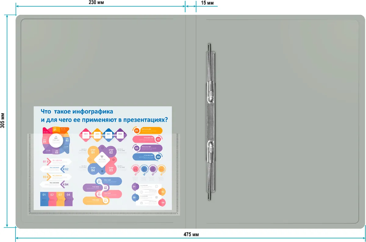 Папка метал.пруж.скоросш. Бюрократ -PZ07PGREY A4 пластик 0.7мм внут.и (-PZ07PGREY)
