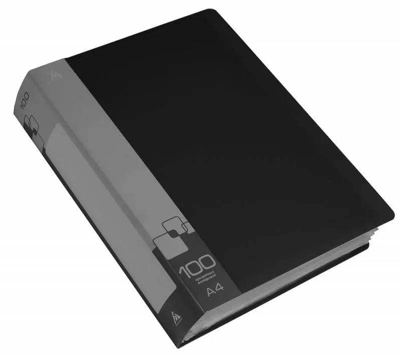 Папка с 100 прозр.вклад. Бюрократ -BPV100BLCK A4 пластик (-BPV100BLCK)