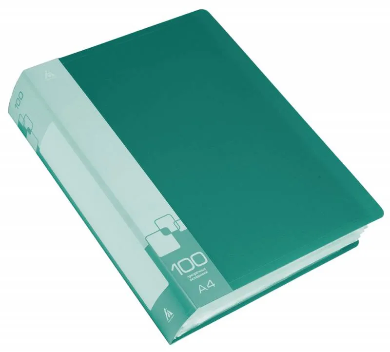 Папка с 100 прозр.вклад. Бюрократ -BPV100GRN A4 пластик (-BPV100GRN)