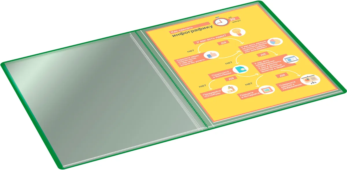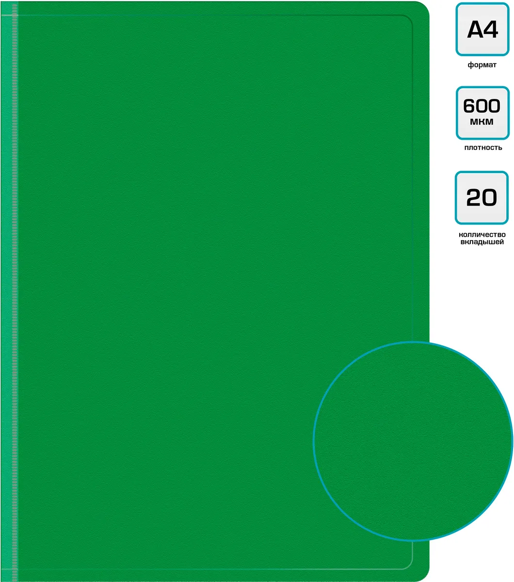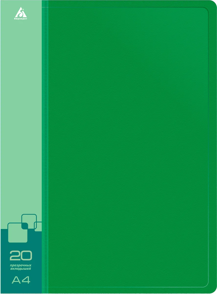 Папка с 20 прозр.вклад. Бюрократ -BPV20GRN A4 пластик (-BPV20GRN)