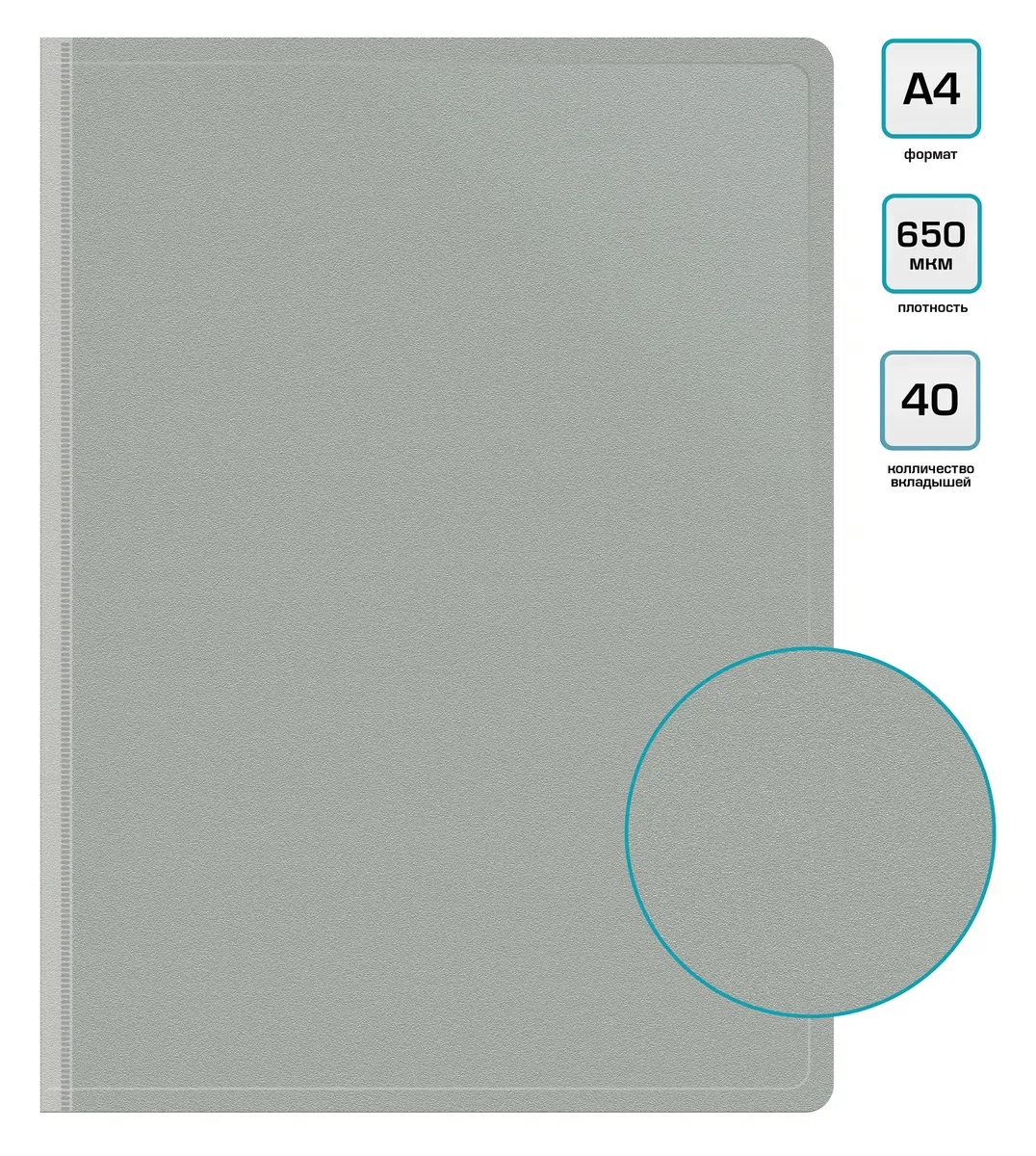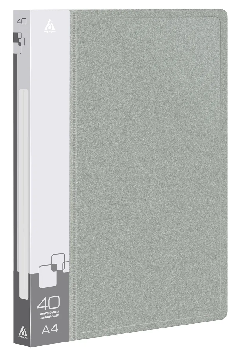 Папка с 40 прозр.вклад. Бюрократ -BPV40GREY A4 пластик (-BPV40GREY)