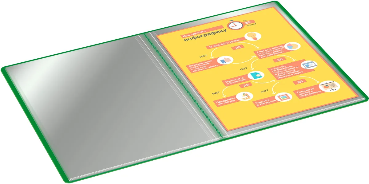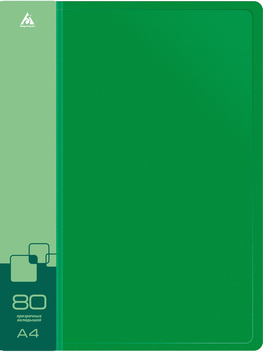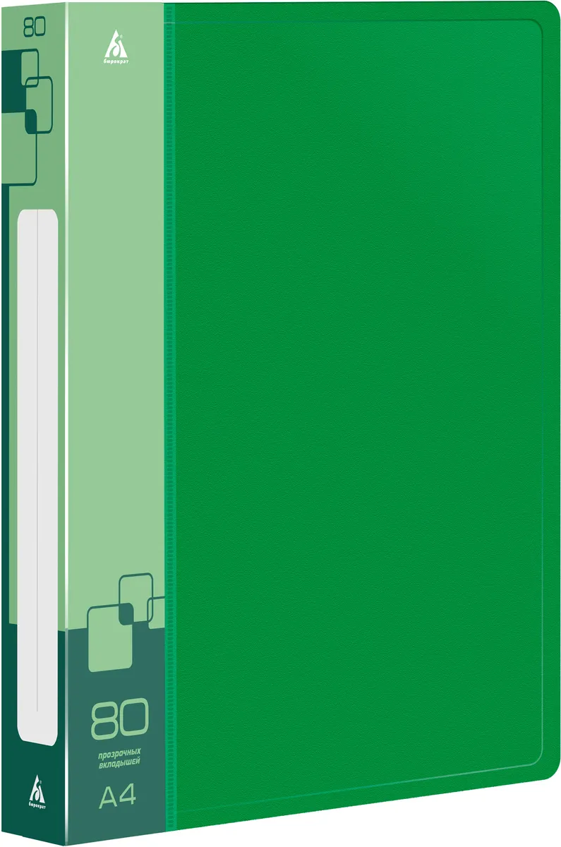 Папка с 80 прозр.вклад. Бюрократ -BPV80GRN A4 пластик (-BPV80GRN)