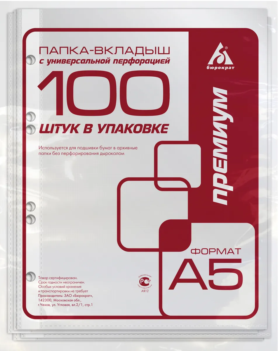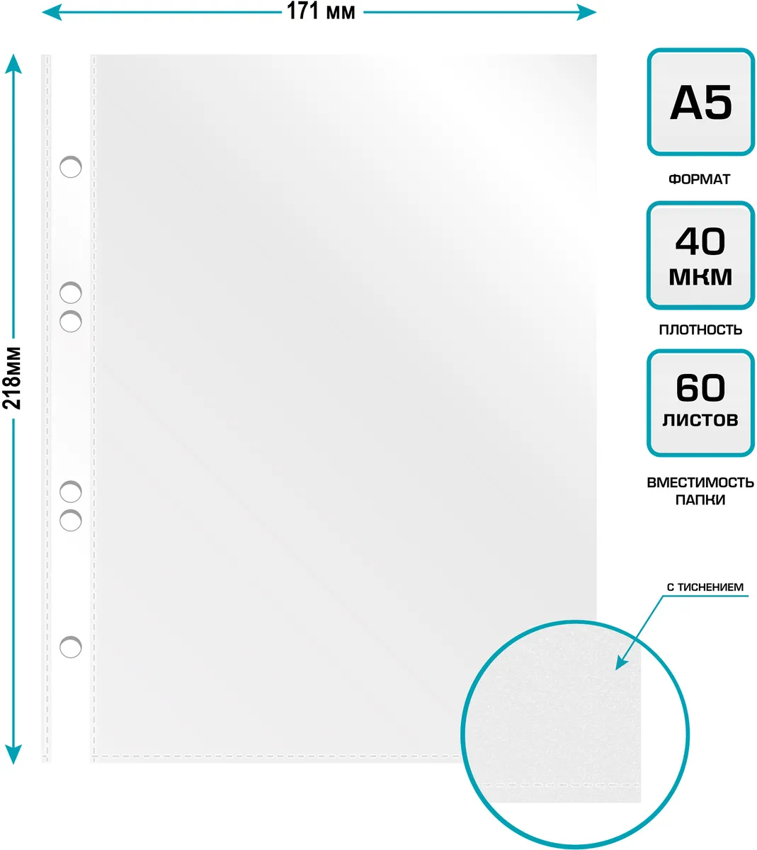 Папка-вкладыш Бюрократ Премиум -013A5T тисненые А5 40мкм (упак.:100шт) (-013A5T)