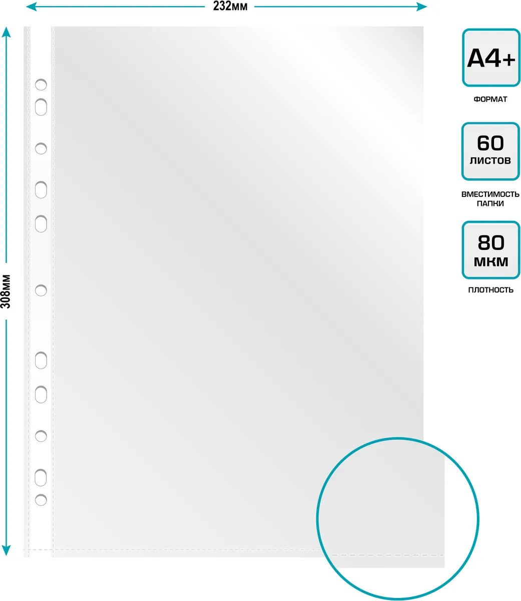 Папка-вкладыш Бюрократ СуперЛюкс -080GSLUX глянцевые А4+ 80мкм (упак.:100шт) (-080GSLUX)
