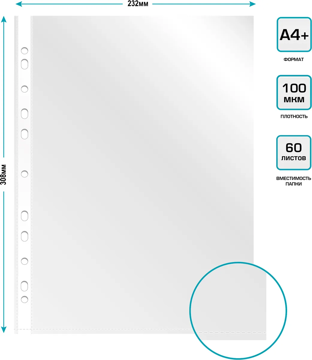 Папка-вкладыш Бюрократ СуперЛюкс -100GSLUX глянцевые А4+ 100мкм (упак.:100шт) (-100GSLUX)