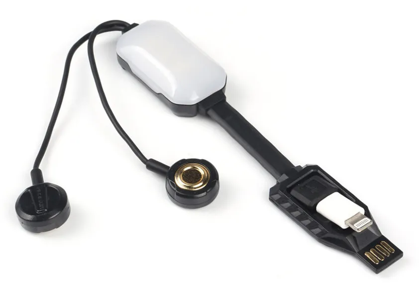 Входной и выходной порт стандарта USB 2.0, коннектор Lightning, индикатор заряда, встроенный фонарь.