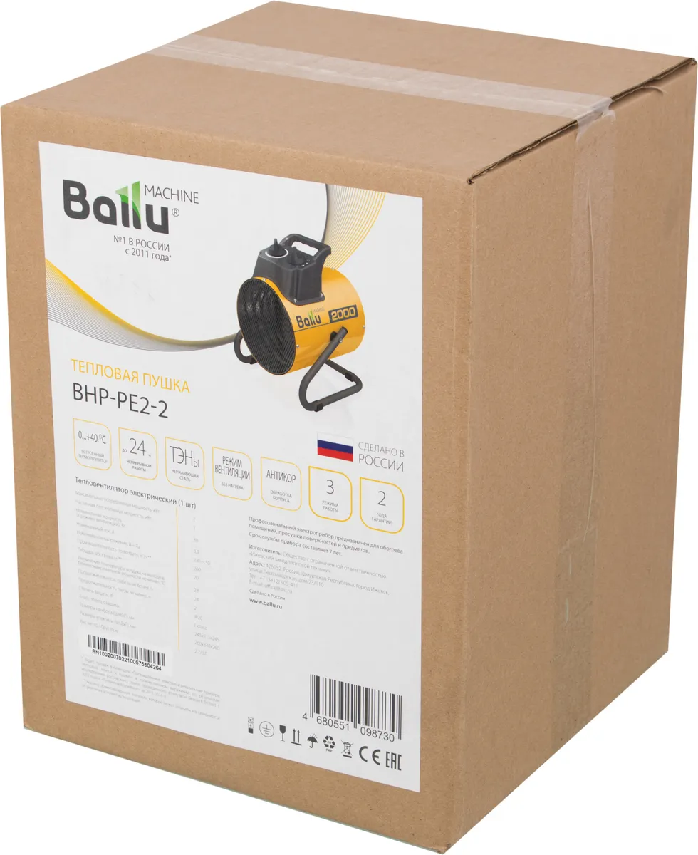 Тепловая пушка Ballu BHP-PE2-2 обогреет теплицу, гараж, подсобное помещение и жилую площадь 20 м2. ТЭН из нержавеющей стали, двойной цилиндрический корпус из оцинкованной стали c универсальной ручкой-подставкой - эффективно направят воздушный поток, обесп -