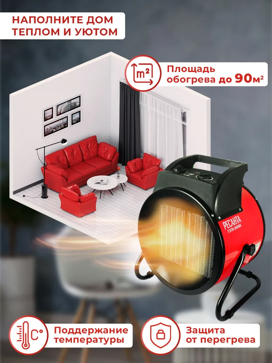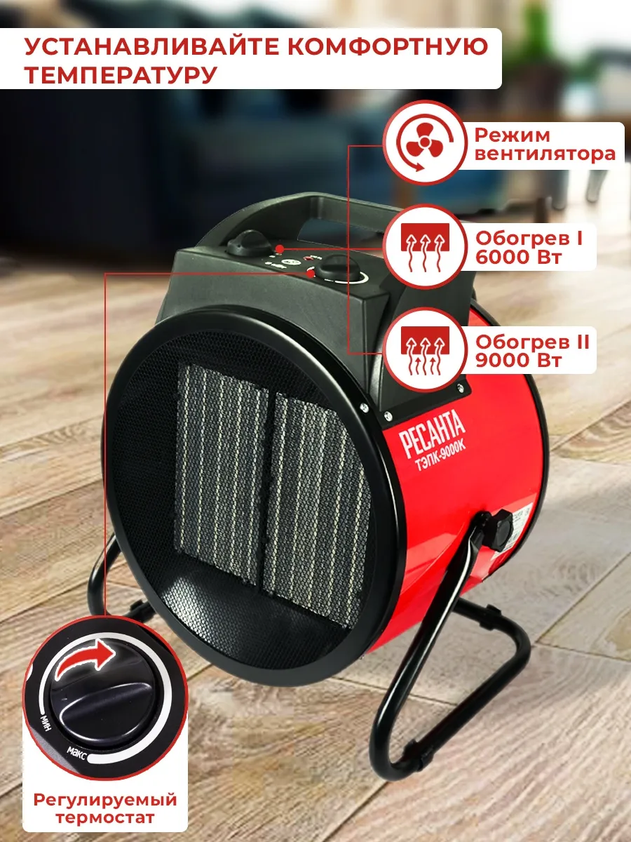 Тепловая пушка электрическая Ресанта ТЭПК-9000K красный/черный (67/1/33)