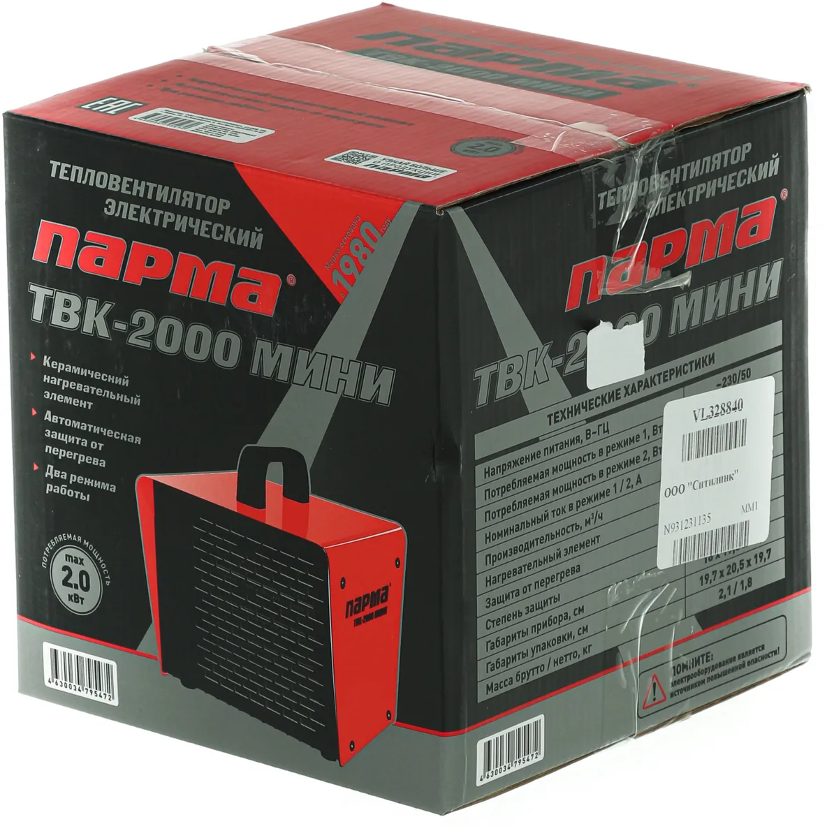 Тепловая пушка электрическая Парма ТВК-2000 МИНИ оранжевый/черный (02.011.00060)