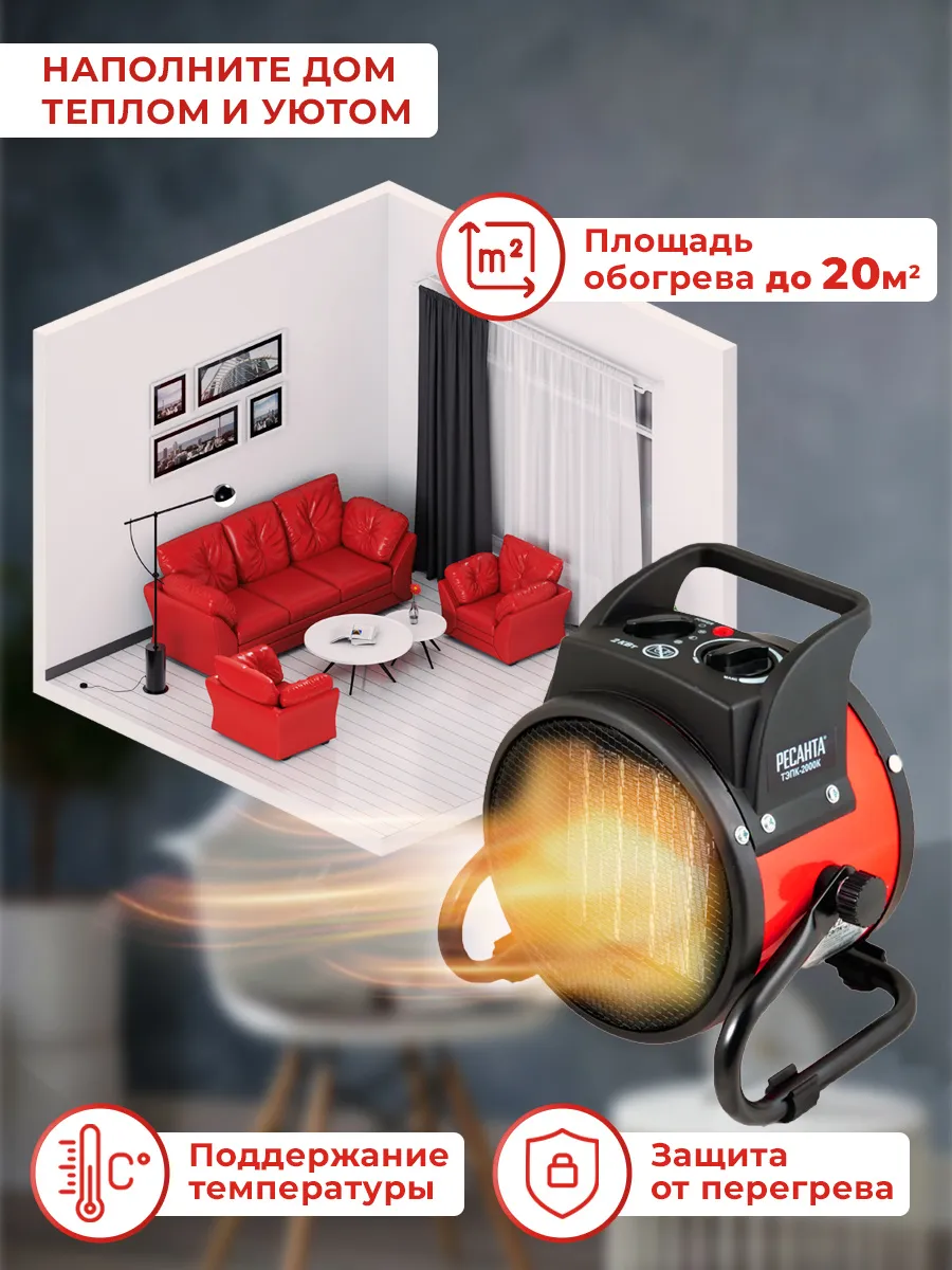 Тепловая пушка электрическая Ресанта ТЭПК-2000K 2000Вт красный (67/1/24)