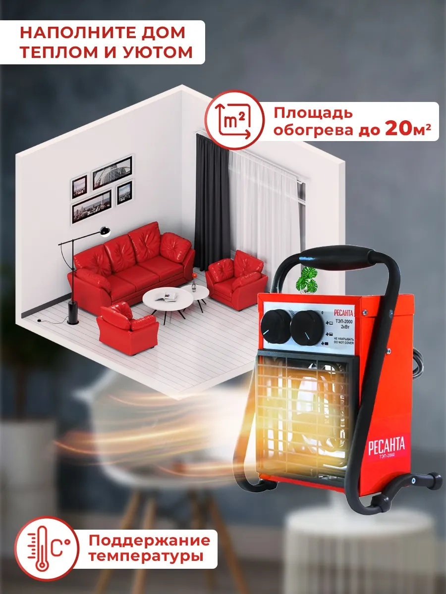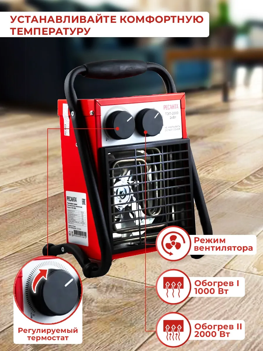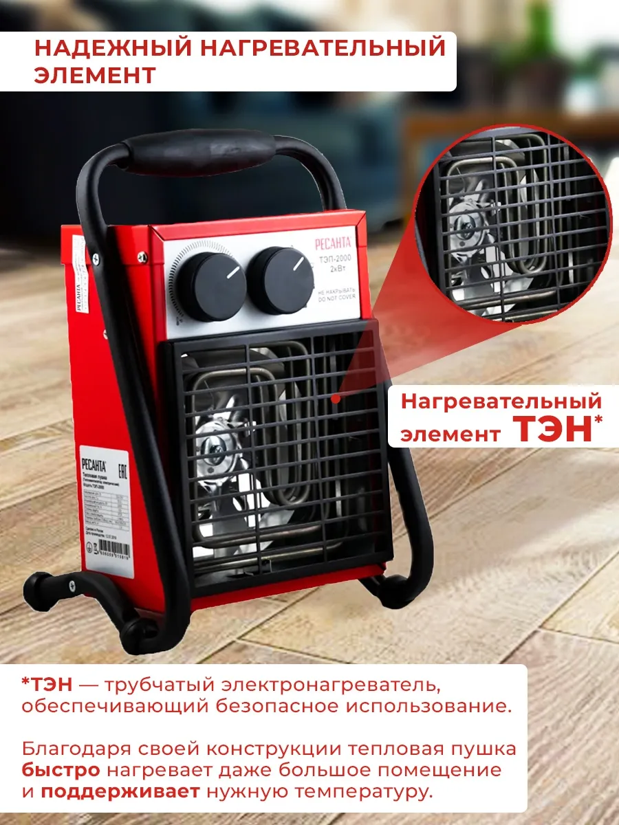 Тепловая пушка электрическая Ресанта ТЭП-2000 2000Вт красный (67/1/1)