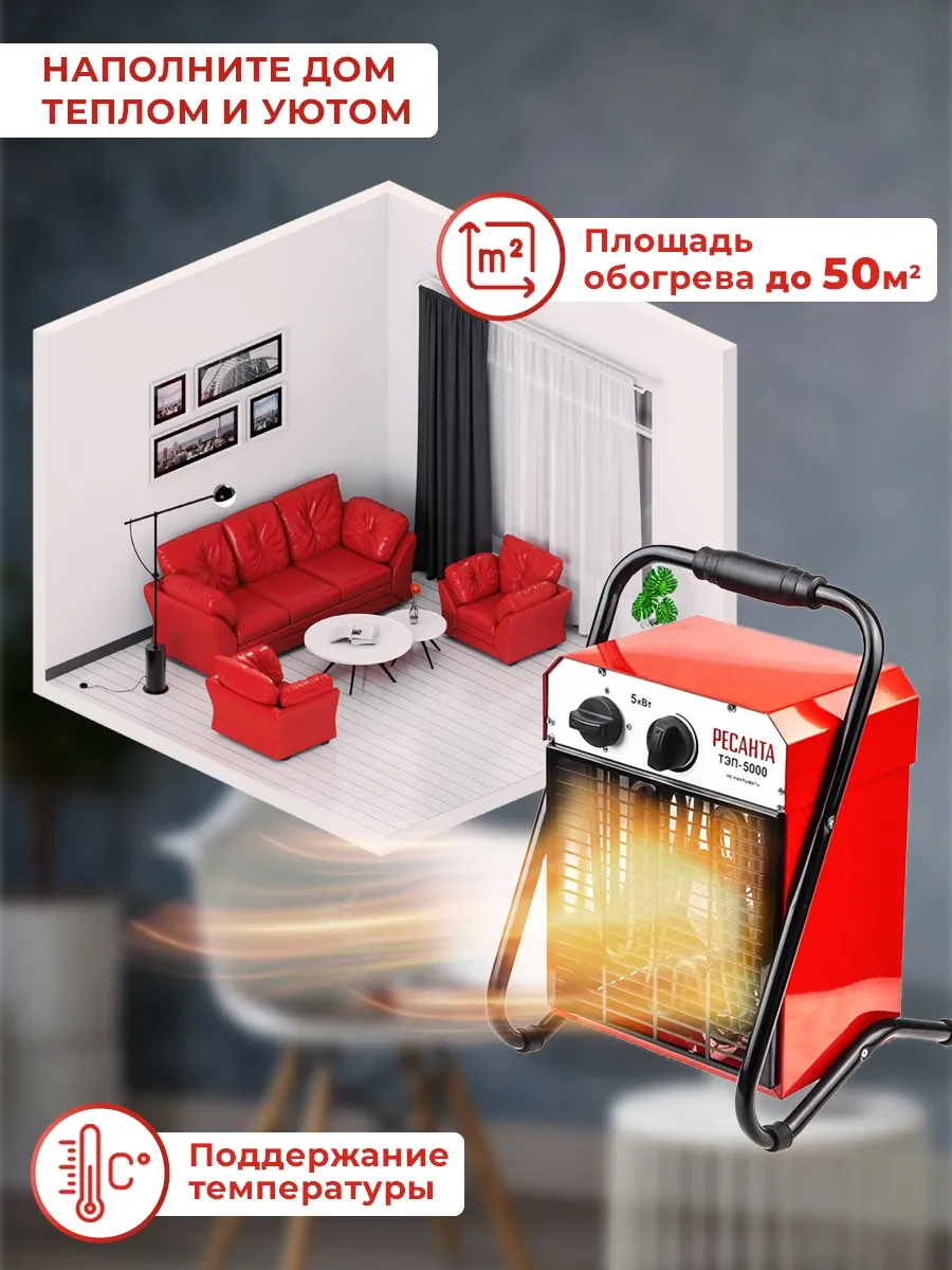 Тепловая пушка электрическая Ресанта ТЭП-5000 5000Вт красный (67/1/3)