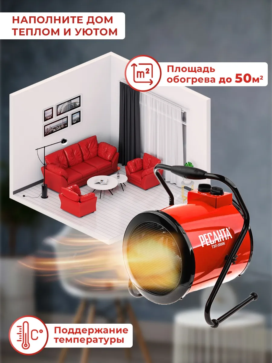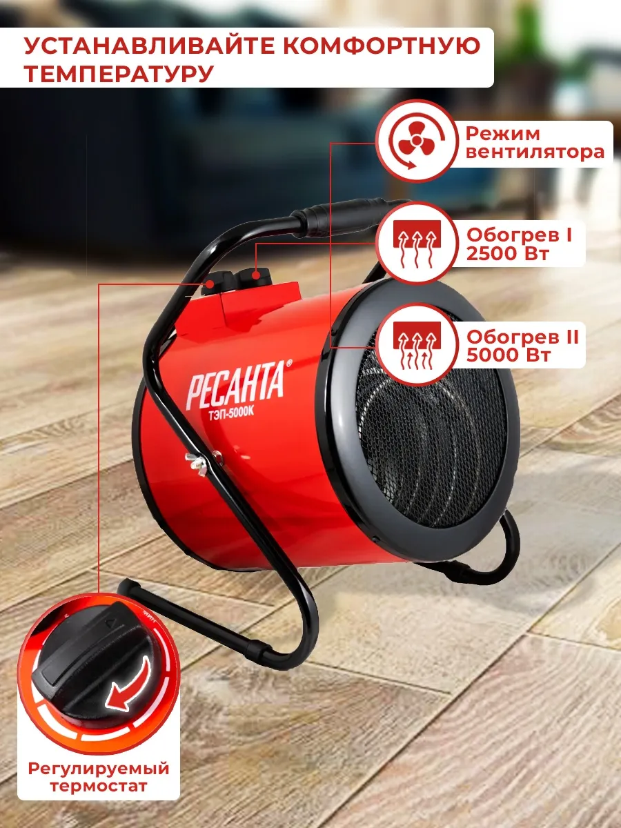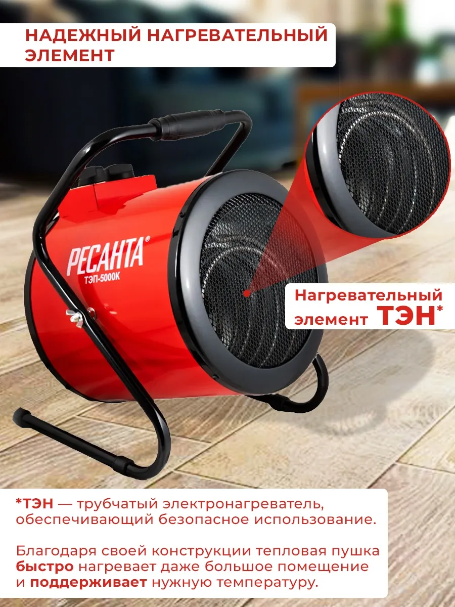 Тепловая пушка электрическая Ресанта ТЭП-5000К 5000Вт красный