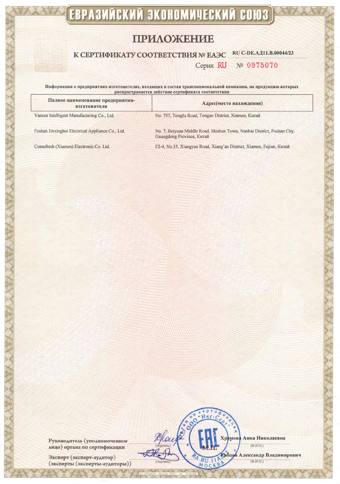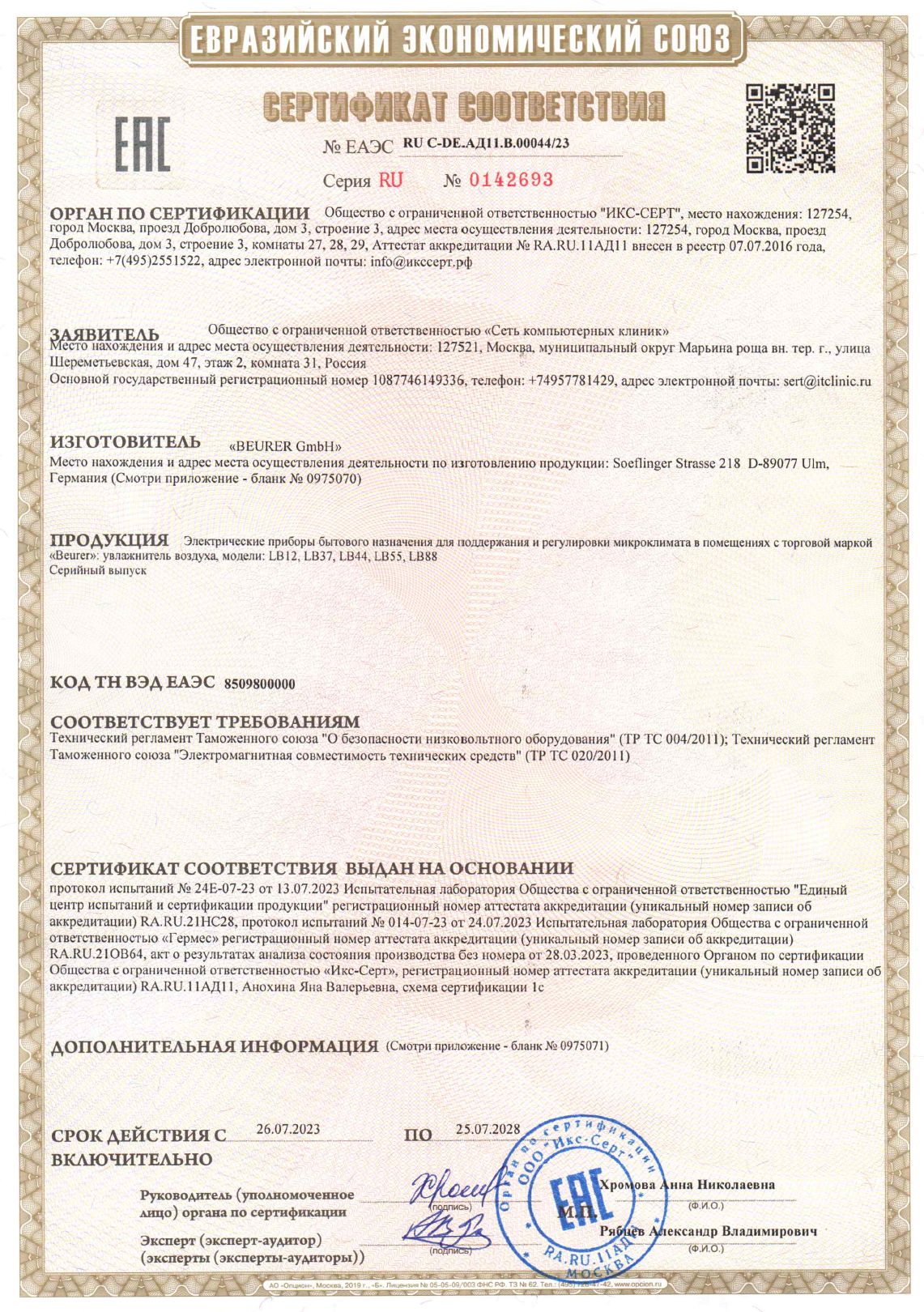 ЕАЭС RU С-DE.АД11.В.00044/23 | 25.07.2023 | 24.07.2028 |
