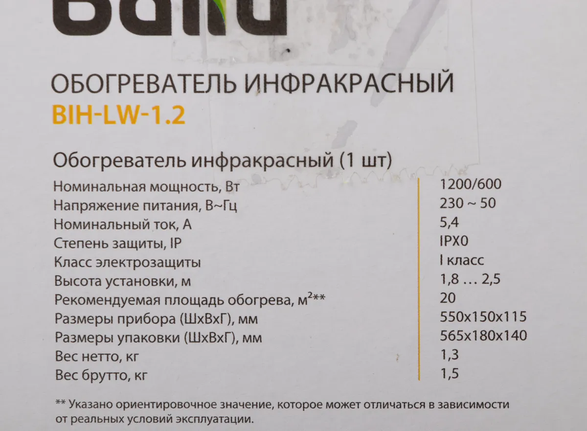 Минимальное расстояние при длительном нахождении в зоне обогрева