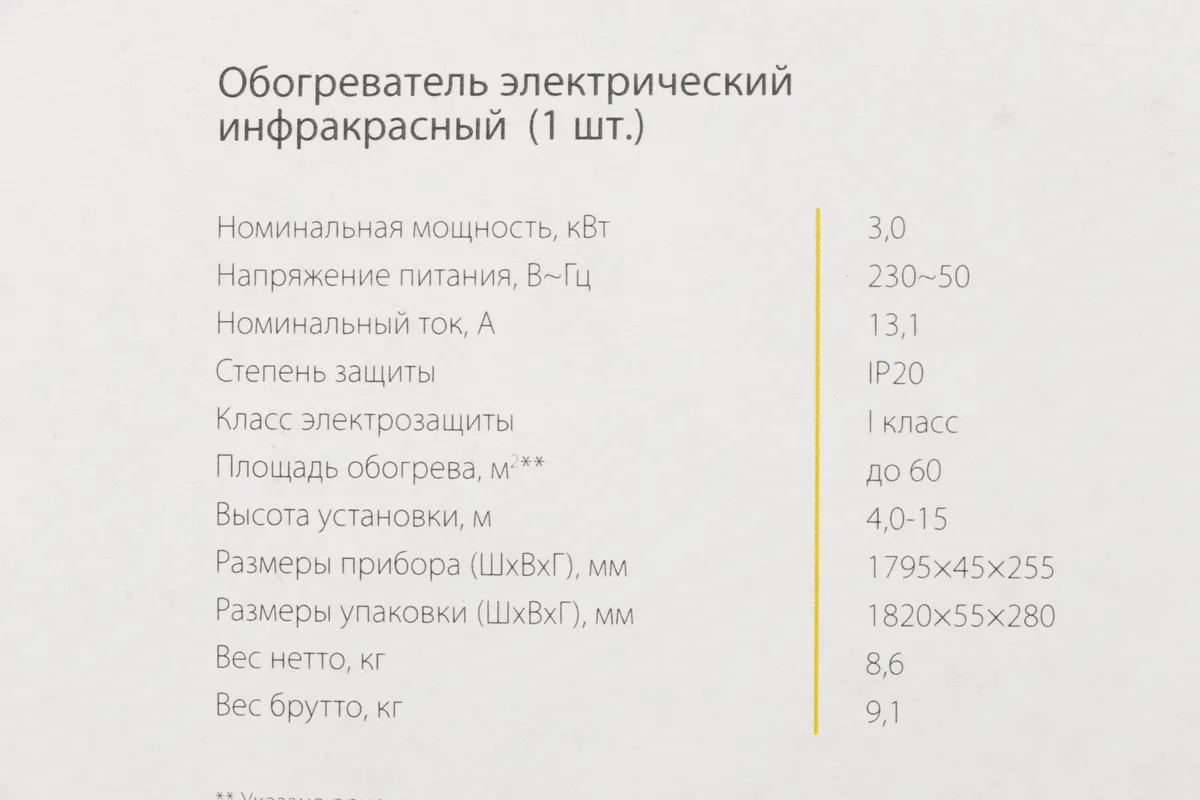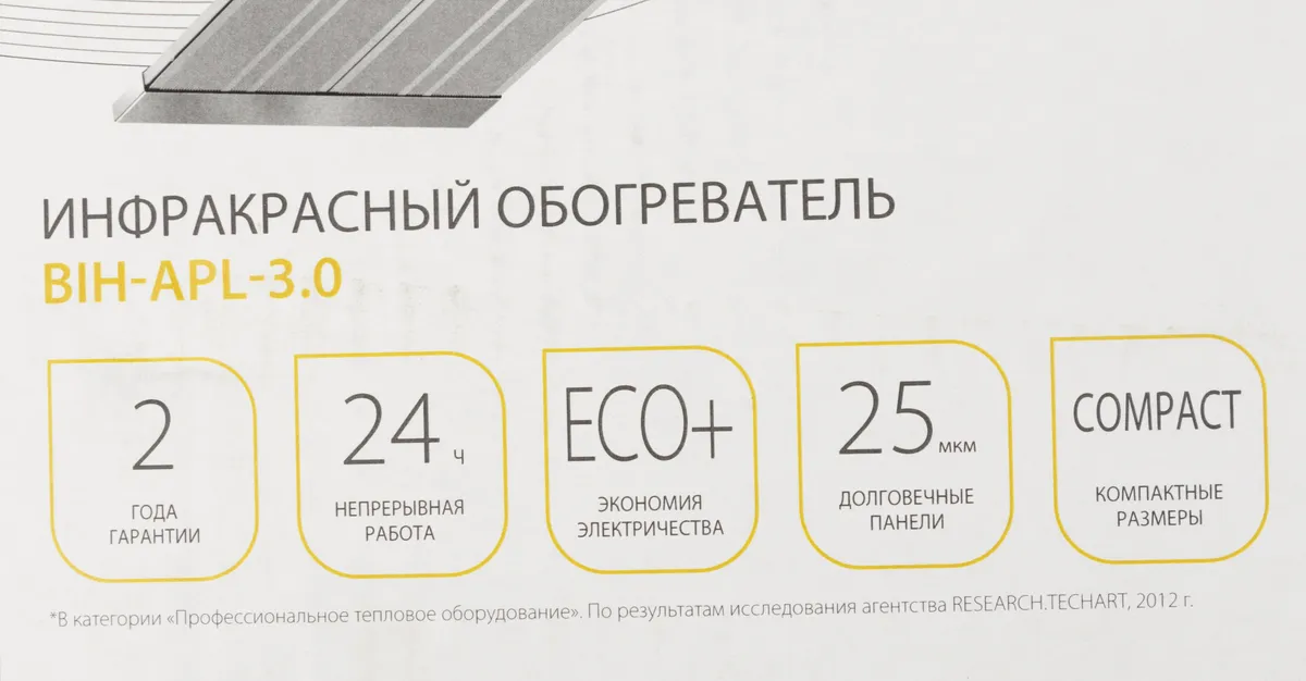 Инфракрасный обогреватель BIH-APL-3.0 – самый компактный современный экономичный отопительный прибор для направленного обогрева. Он незаменим для обогрева рабочих зон в помещениях с высокими потолками (4–15 м) или плохой теплоизоляцией, где применение тра -