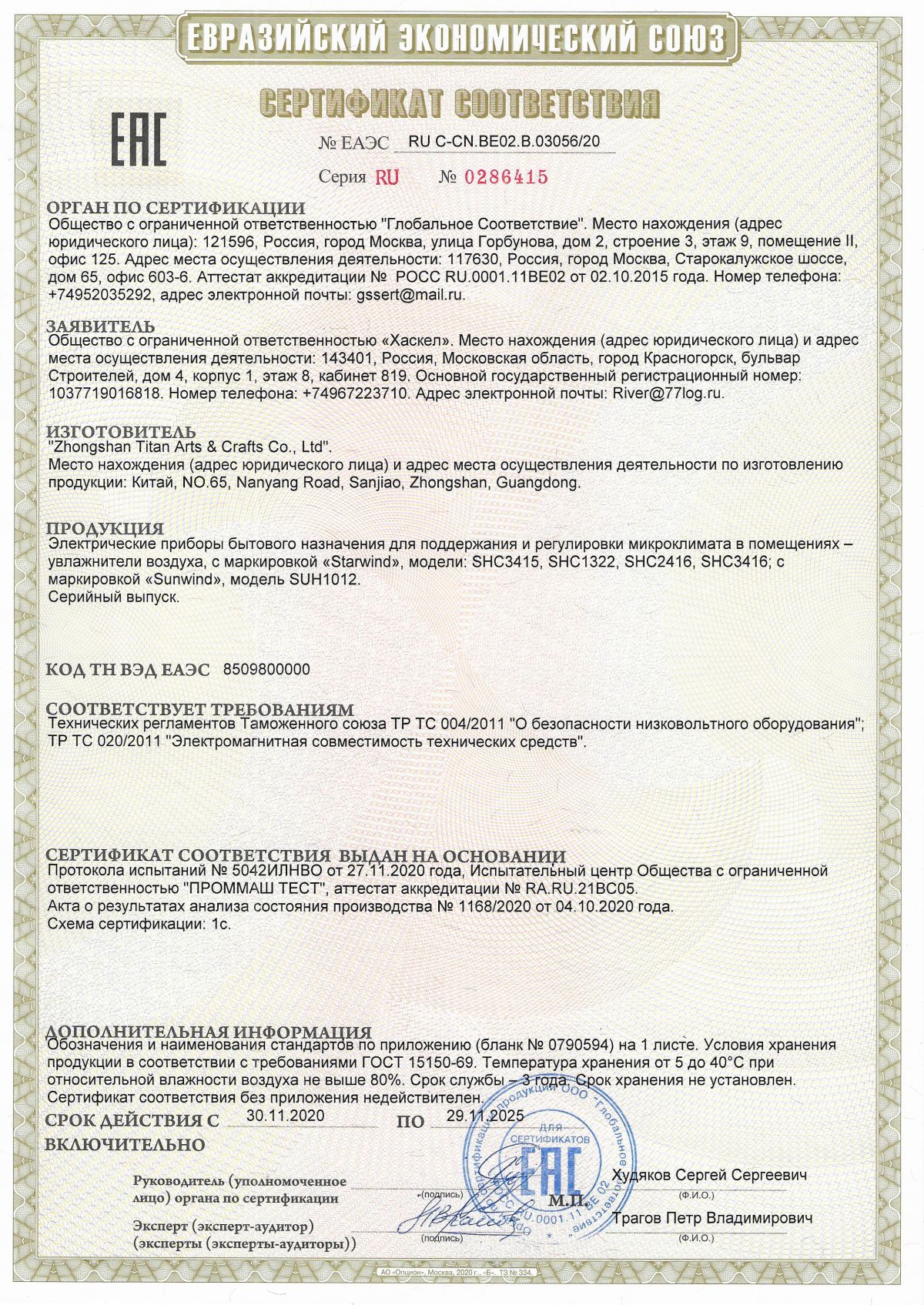 ЕАЭС RU С-CN.ВЕ02.В.03056/20 | 29.11.2020 | 28.11.2025 |