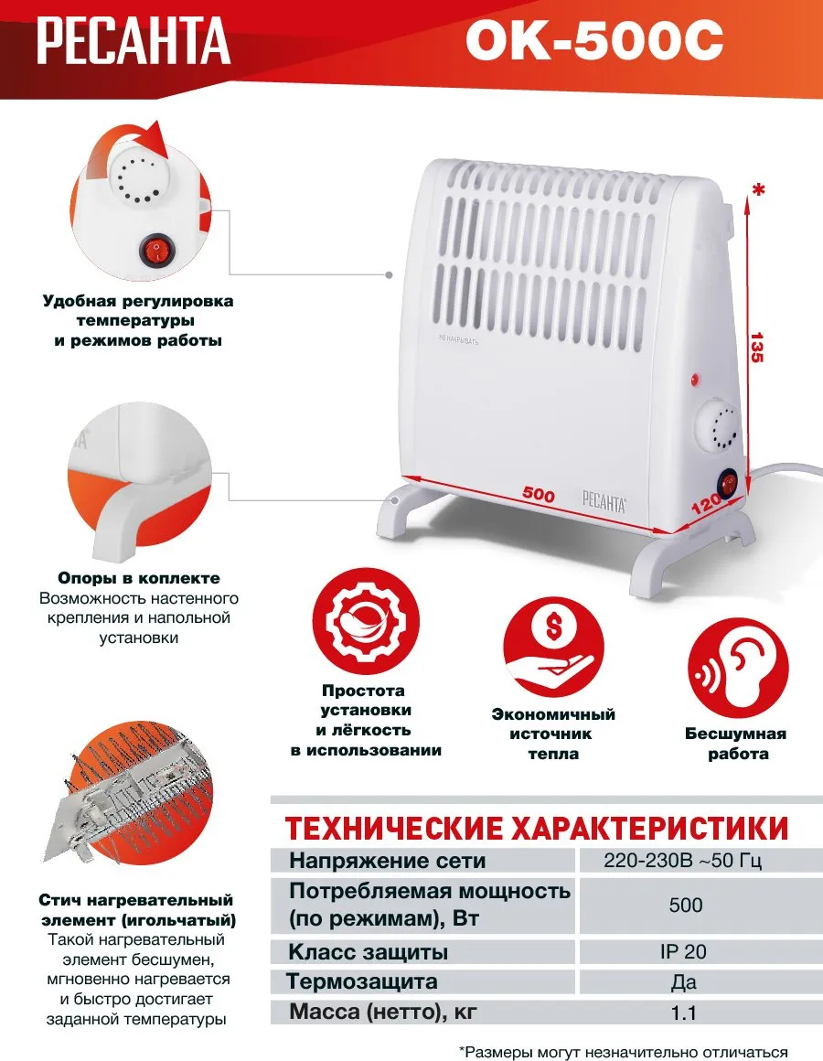 Конвектор Ресанта ОК-500С 500Вт белый (67/4/5)