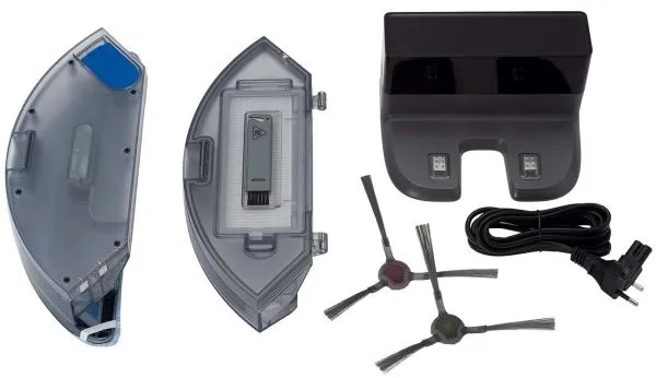 Для того чтобы перейти на режим влажной уборки, необходимо установить вместо контейнера для твёрдого мусора резервуар для воды, а также закрепить тряпочку из микрофибры на днище. -