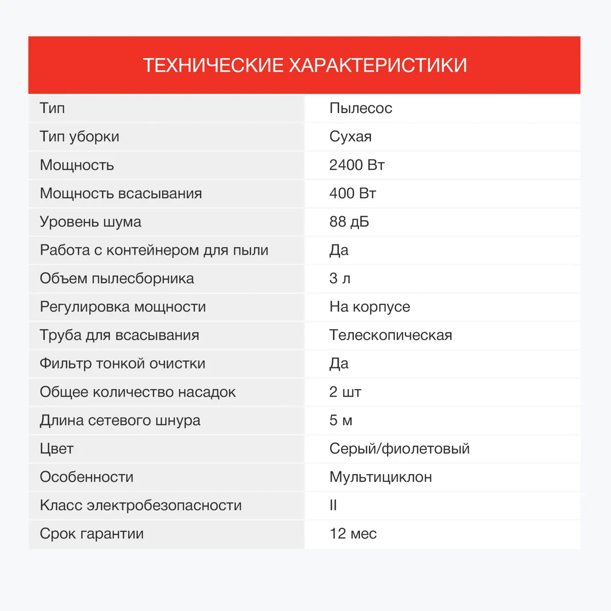 | Пылесос Starwind SCV2040 2400Вт серый/фиолетовый | ЕАЭС N RU Д-VG.РА06.В.11241/25 | 17.07.2025 | 16.07.2030 |