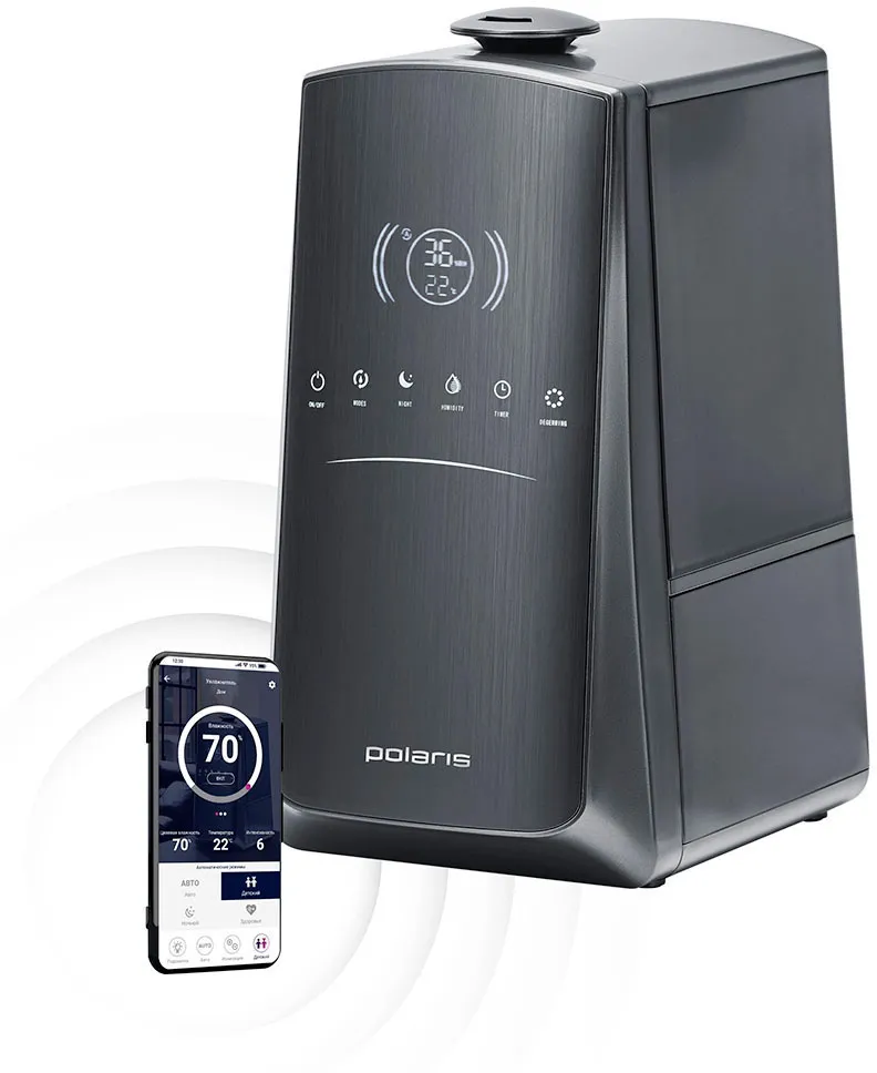 Функция Wi-Fi. Дистанционное управление через мобильное приложение для iOS / Android. 4 режима работы: автоматический, детский, здоровый, ночной. Индикация влажности и температуры. Встроенный ионизатор. Функция "Теплый пар".Фильтр с ионообменной смолой. А -