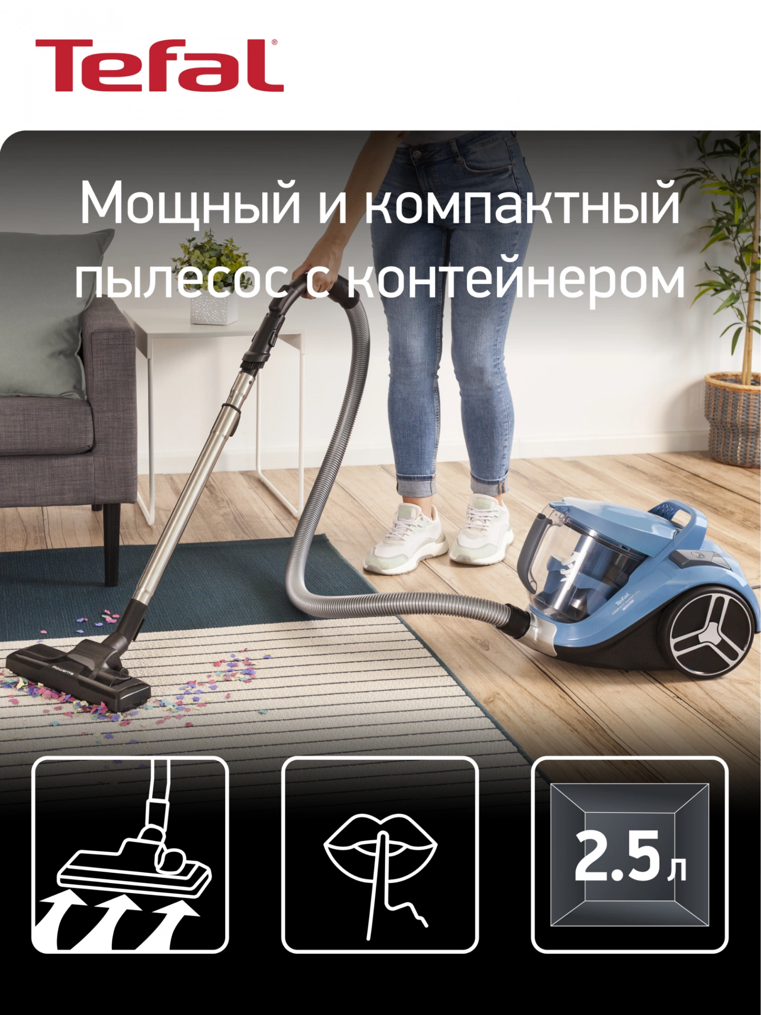 Впечатляет своей эффективностью и компактным эргономичным корпусом и отлично подходит для эффективной ежедневной уборки. Энергоэффективный мотор EffiTech и усовершенствованная циклонная технология гарантируют высокую мощность всасывания и неизменную эффе -