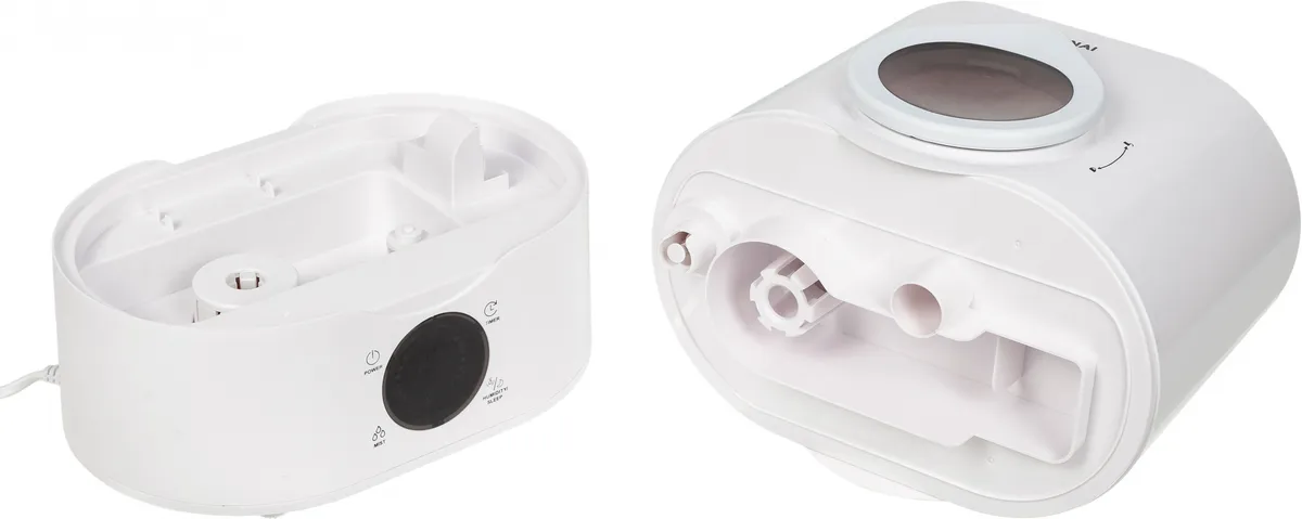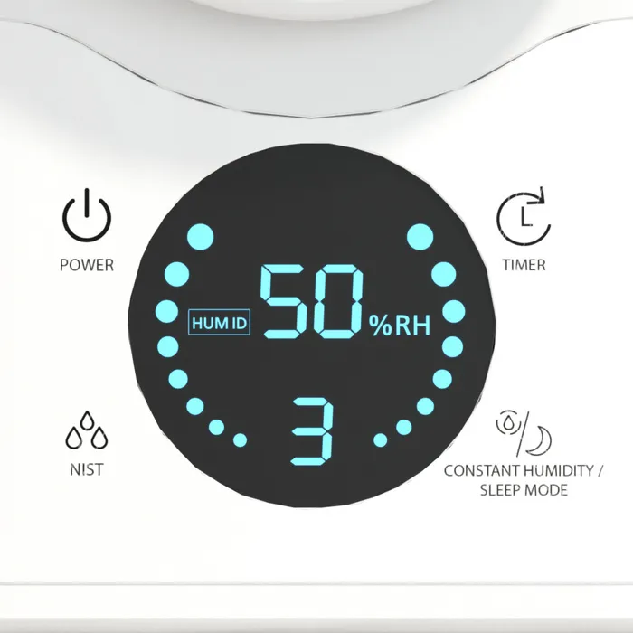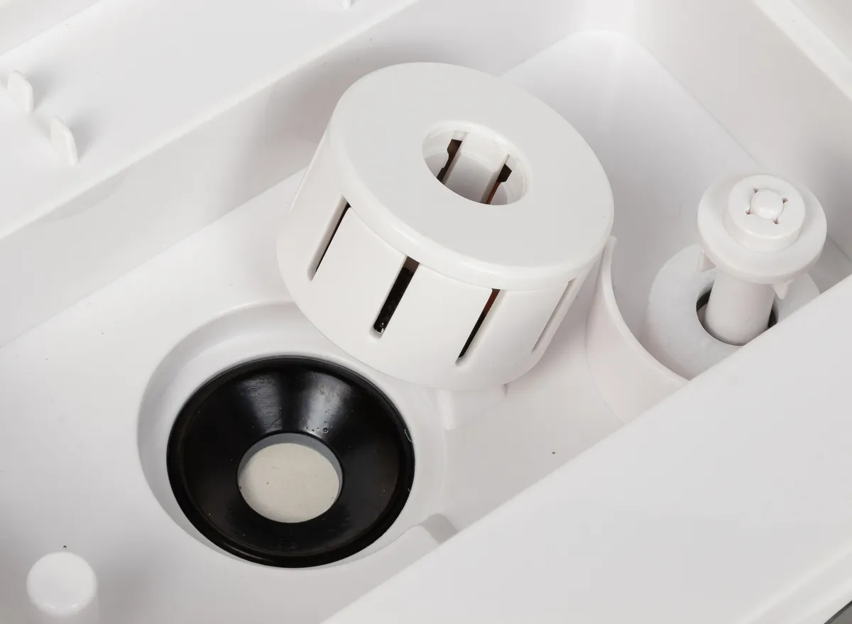 Фильтр для воды. Функция ароматизации. Большое смотровое окно. Залив воды сбоку бака. Отображает текущий уровень влажности и температуры в помещении. Устанавливает один из 3х уровней мощности увлажнения. Таймер автоматического отключения. -