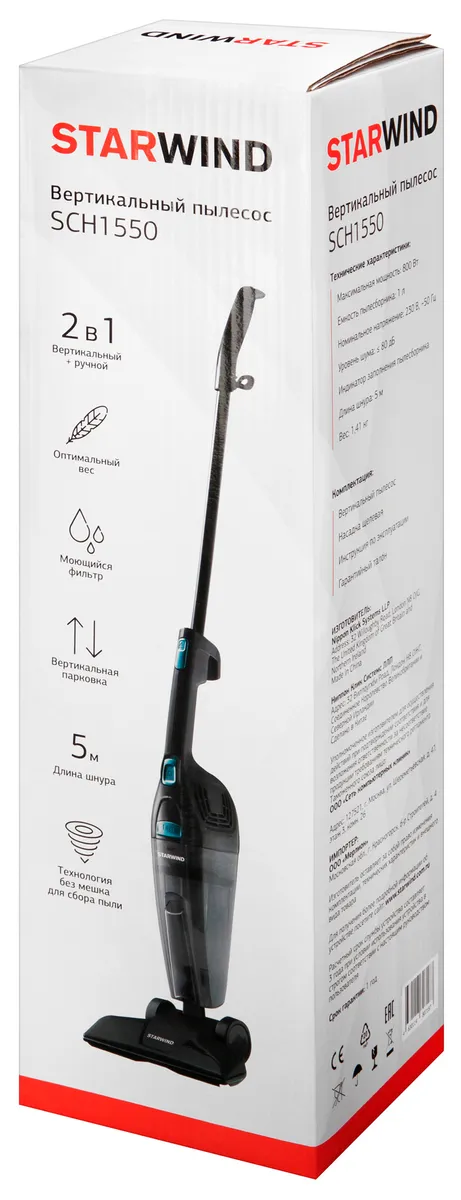 Пылесос ручной Starwind SCH1550 800Вт черный | ЕАЭС KG VG С.KG417/052.02.06749 | 17.02.2025 | 16.02.2030 |