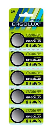 Батарея Ergolux Lithium CR2016-BP5 CR2016 75mAh (5шт) блистер (12049)