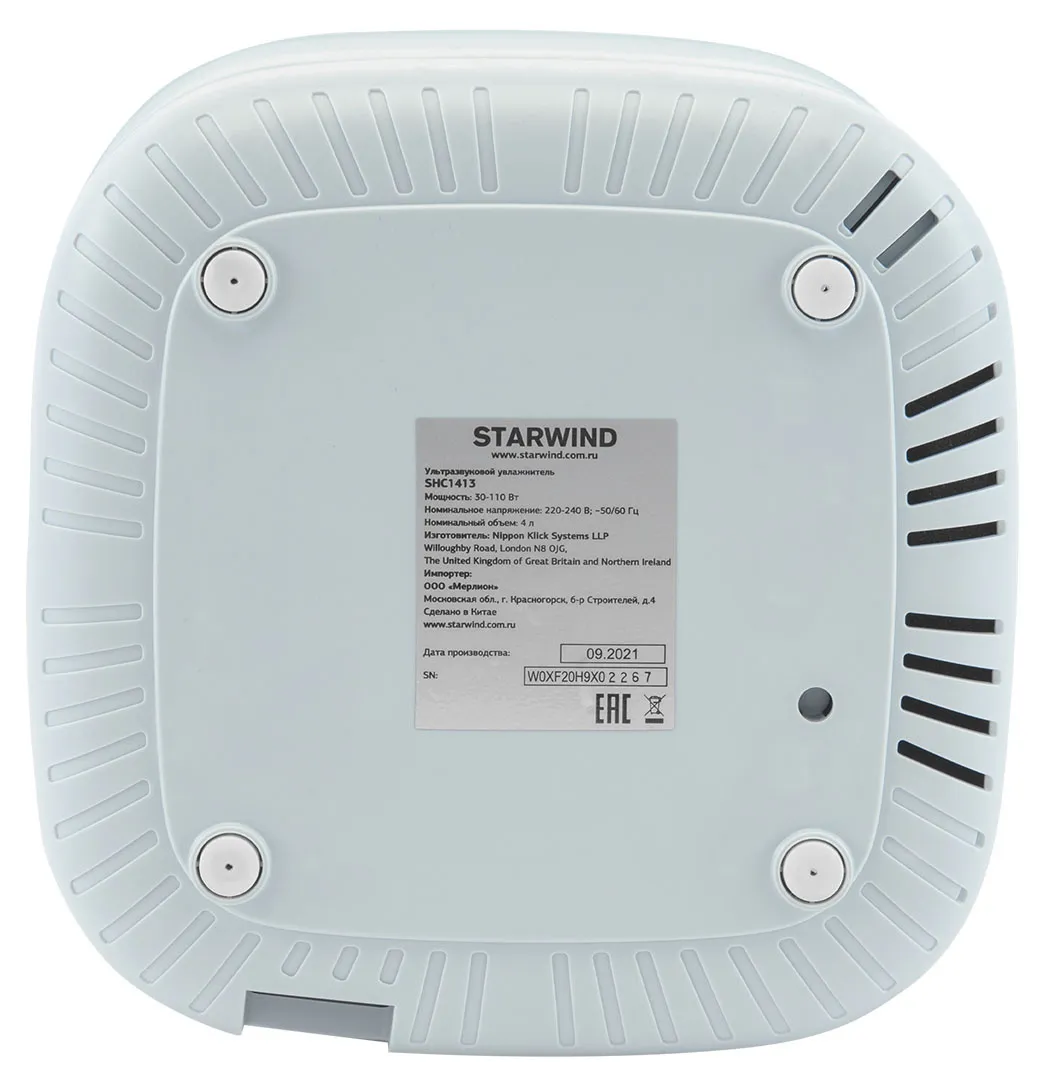 Увлажнитель воздуха Starwind SHC1413 110Вт (ультразвуковой) голубой | ЕАЭС RU С-CN.АД87.В.00434/23 | 02.02.2023 | 01.02.2028 |