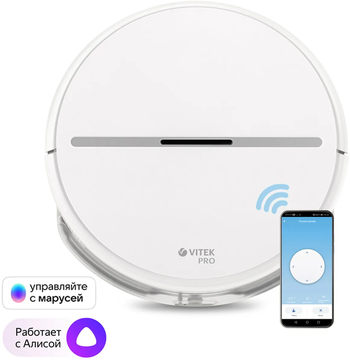 Сделать ваш дом по-настоящему чистым поможет компактный робот-пылесос VITEK VT-1807, выполненный в стильном лаконичном дизайне. Прибор способен производить не только сухую уборку пола и коврового покрытия высотой до 1,4 см, но и качественную влажную уборк -
