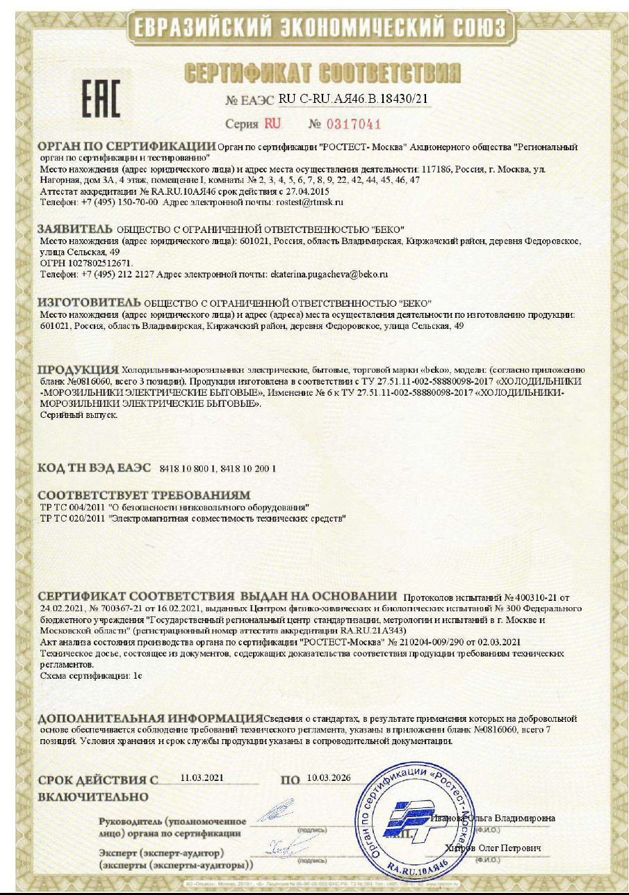 ЕАЭС RU С-RU.АЯ46.В.18430/21 | 10.03.2021 | 09.03.2026 |