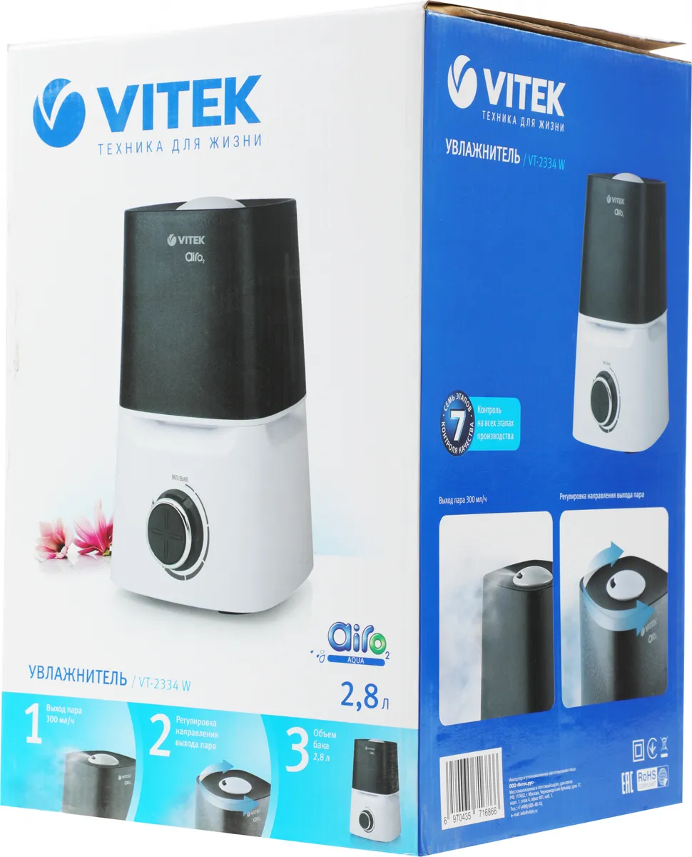 Увлажнитель воздуха Vitek 2334-VT-02 23Вт (ультразвуковой) белый/серый (2334-VT-02)