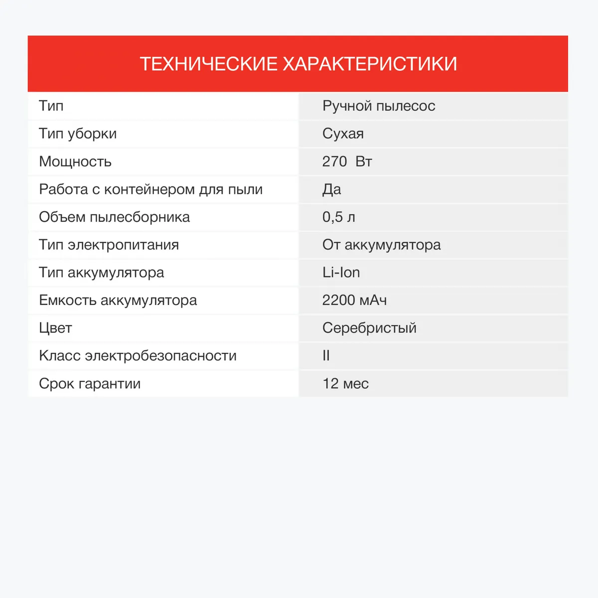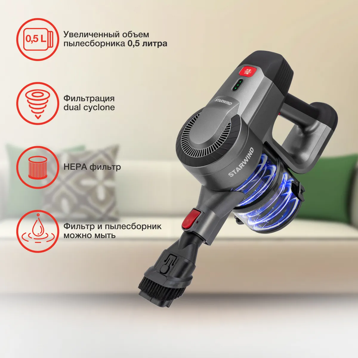 Пылесос ручной Starwind SCH9951 270Вт серебристый/красный