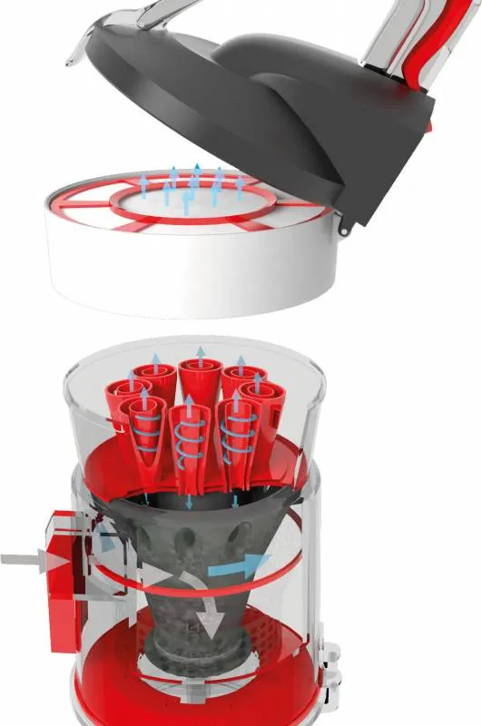 Стабильно высокая мощность всасывания благодаря особой конструкции циклонного фильтра. -