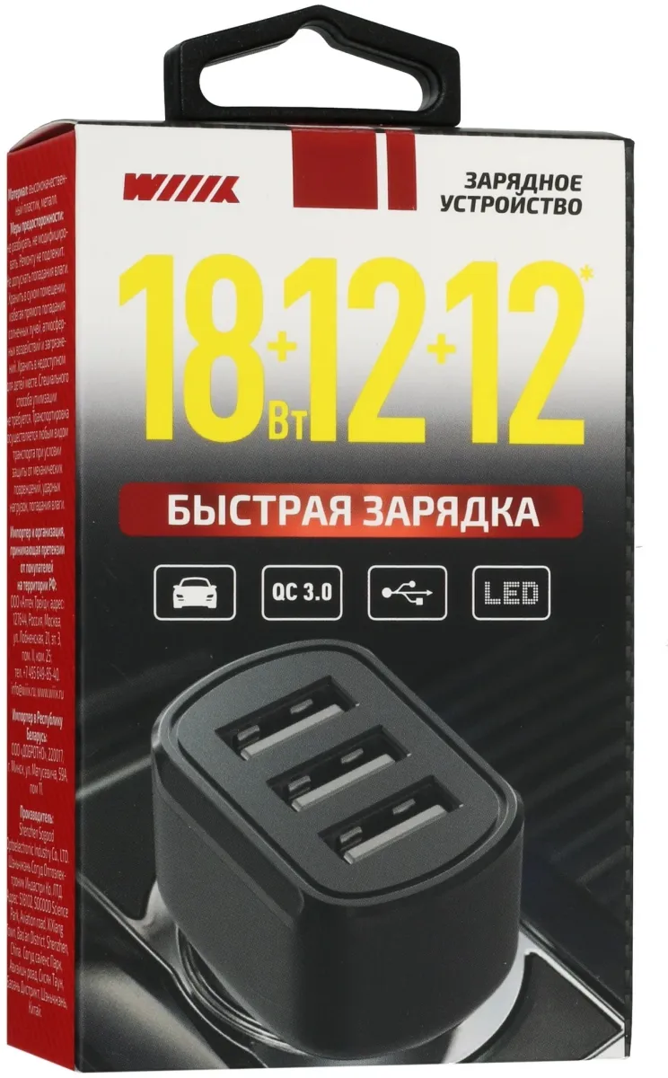 Автомобильное зар./устр. Wiiix UCC-5-3-01-QC-ANT 2.1A (QC) 3xUSB универсальное черный