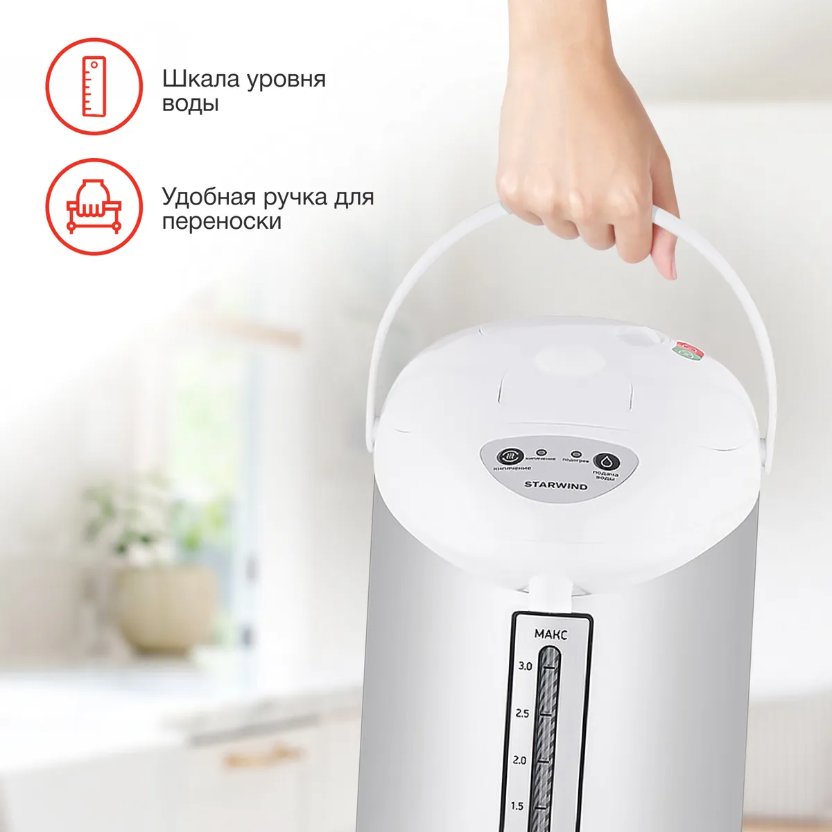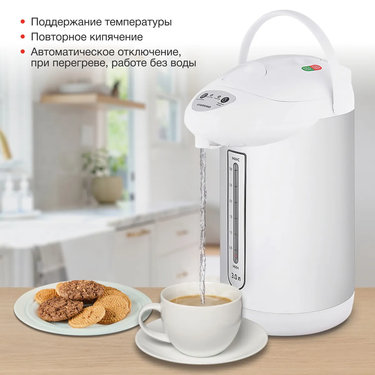 поддержание температуры воды, функция повторного кипячения -