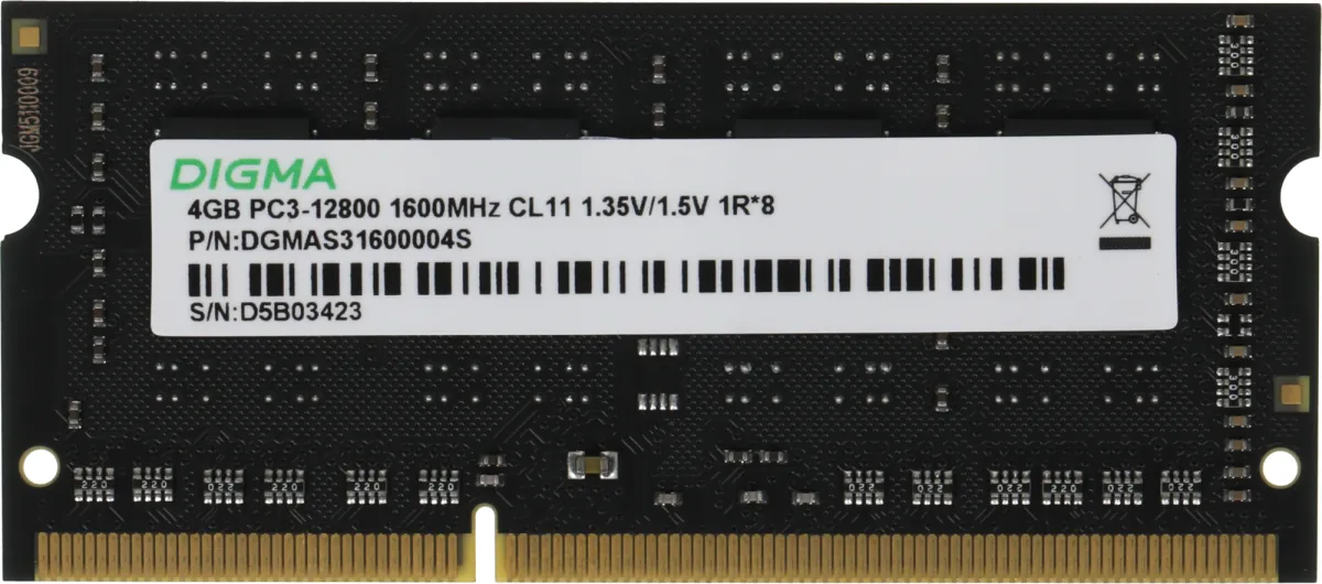 Память DDR3L 4Gb 1600MHz Digma DGMAS31600004S RTL PC3-12800 CL11 SO-DIMM 204-pin 1.35В (DGMAS31600004S)