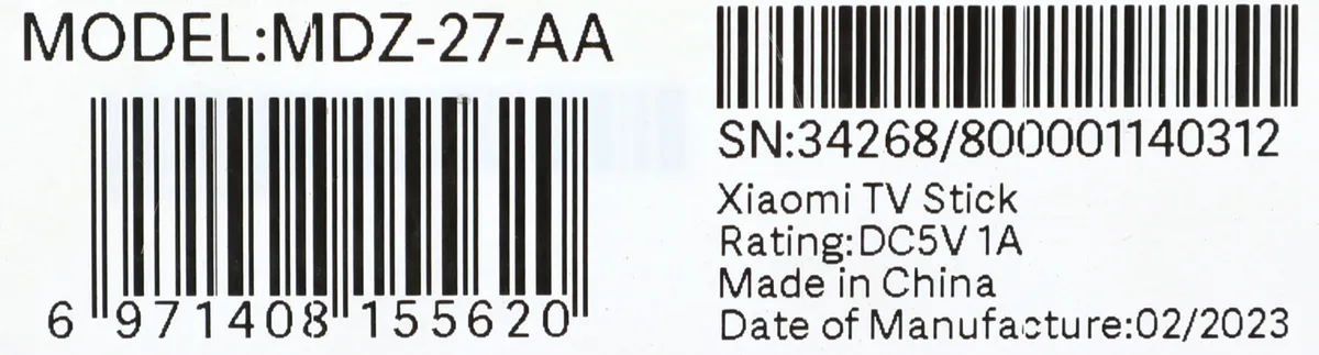 Xiaomi TV Stick 4K x 1; Пульт дистанционного управления x 1; Адаптер питания x 1; Руководство пользователя x 1; Удлинитель HDMI x 1 -